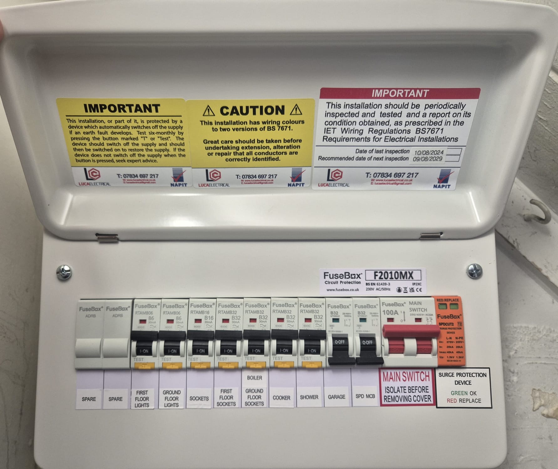 Installation of modern consumer units to replace outdated fuse boards, improving electrical safety and reliability. All work includes RCD and surge protection where required and is carried out in line with current UK electrical regulations.